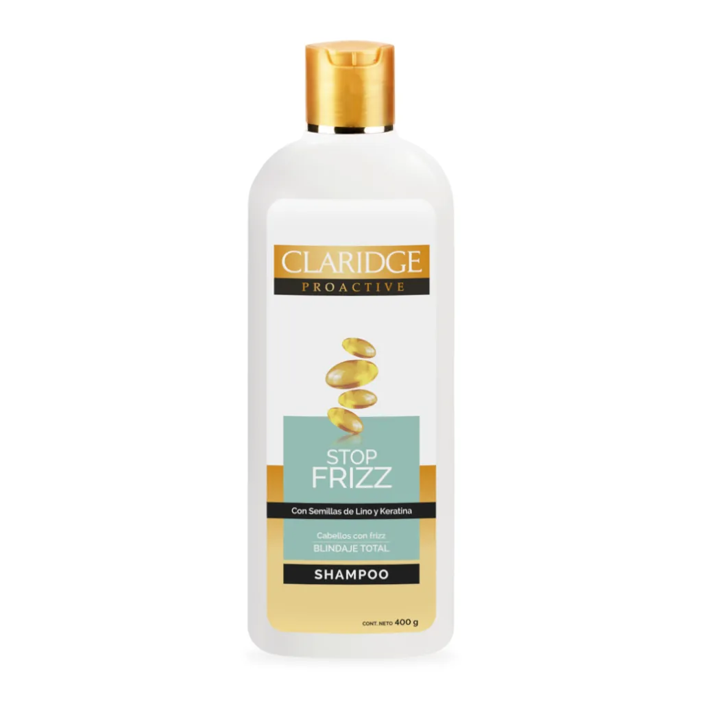Claridge desarrollo su nueva fórmula STOP FRIZZ, combinando las propiedades humectantes e hidratantes de las Semillas de Lino con el poder de reparación de la Keratina, para que el cabello recupere su textura y brillo natural. Es un tratamiento intensivo formulado para reparar y devolver los niveles de hidratación y humectación perdidos en la fibra capilar.
